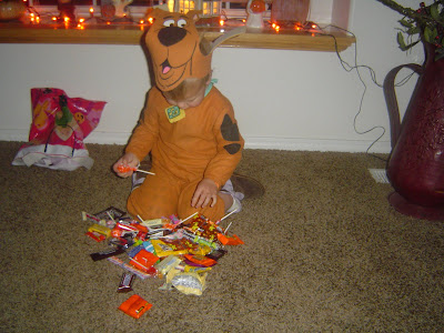 Here are some pics from last year. We looked awesome. Poor Lucy had to be Scooby Doo. It was sad that I made my little girl a dog. Oh well. I just wanted to be Velma really bad. I've had these stupid orange tights and orange turtle neck forever and finally I thought, let's do it. Let's just be the gang. I was going to have Lucy be Daphne but couldn't find a small enough costume. And I wasn't going to pay 50 bucks for one. So, Scooby it was. I hope she'll forgive me. Drew made a great Shaggy also. :)
